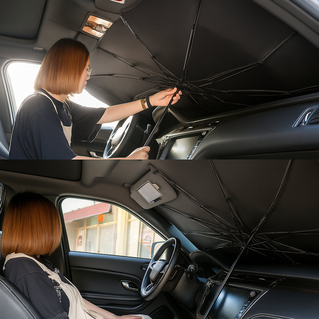 La manera rápida y fácil de mantener a su coche fresco y cómodo bajo el fuerte sol. ¡Proteja a su coche y a usted!